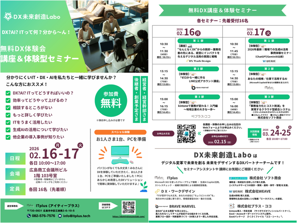 DX未来創造Labo様主催の「無料DX体験型セミナー」が再び開催されます。